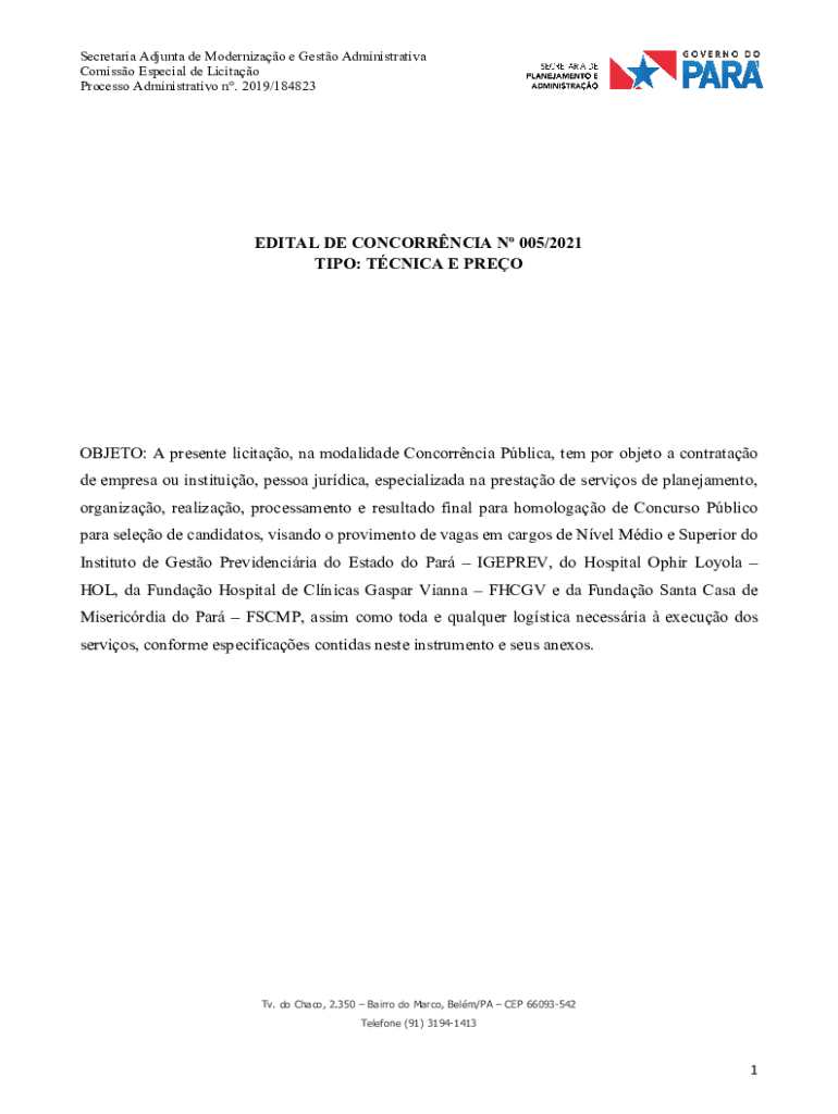 Secretariat Ad junta DE Modernized e Gusto Administrative Comics Especial DE Licit Process Administrative n. 2019/184823EDITAL DE CONCORDIA N 005/2021 TIP: TCN ICA E PREOOBJETO: A present licit, Na