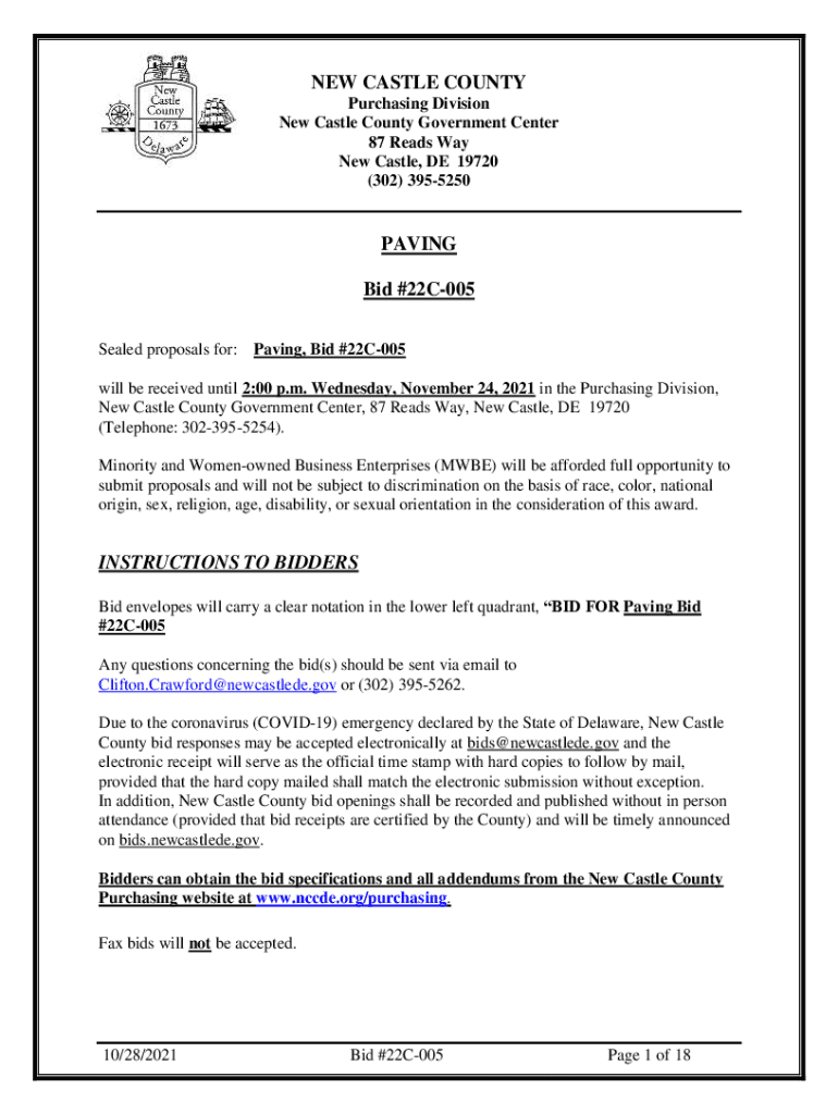 Get the free NEW CASTLE COUNTY PAVING Bid #22C-005 INSTRUCTIONS TO ...