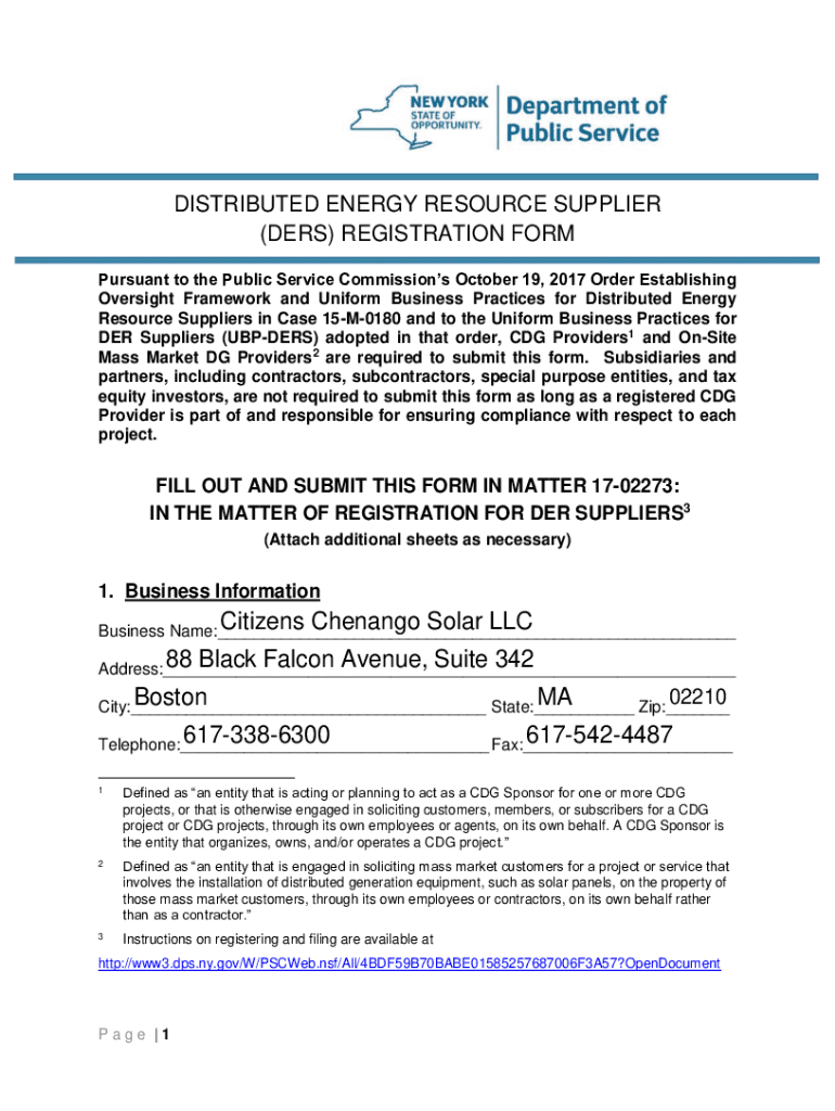DISTRIBUTED ENERGY RESOURCE SUPPLIER (HERS) REGISTRATION FORM Pursuant to the Public Service Commissions October 19, 2017, Order Establishing Oversight Framework and Uniform Business Practices for