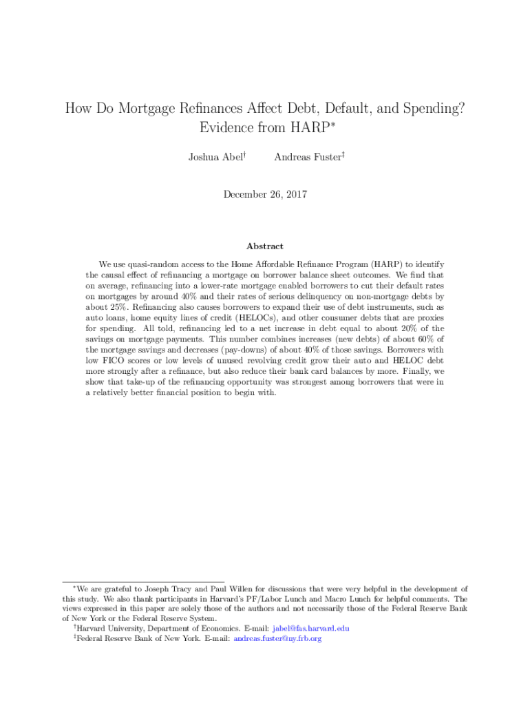Get the free PDF How Do Mortgage Refinances Affect Debt, Default, and ... - scholar harvard