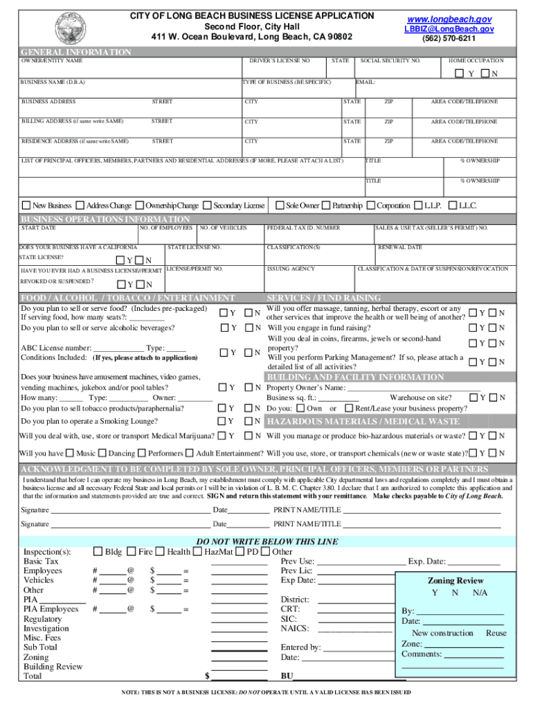 CITY OF LONG BEACH BUSINESS LICENSE APPLICATION