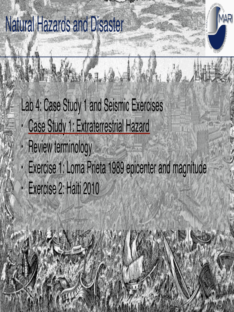 Natural Hazards and Disaster Lab 4: Case Study 1 and Seismic Exercises Case Study 1: Extraterrestrial Hazard Review terminology Exercise 1: Coma Pietà 1989 epicenter and magnitude Exercise 2: Haiti