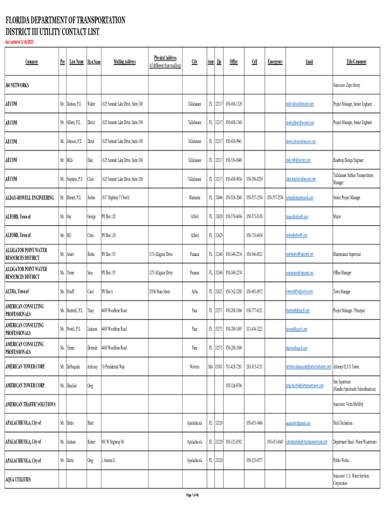 Utility companies and service providers operating in District III of FDOT are required to file the fdot-district-iii-utility-contact-list-04-02pdf - net.