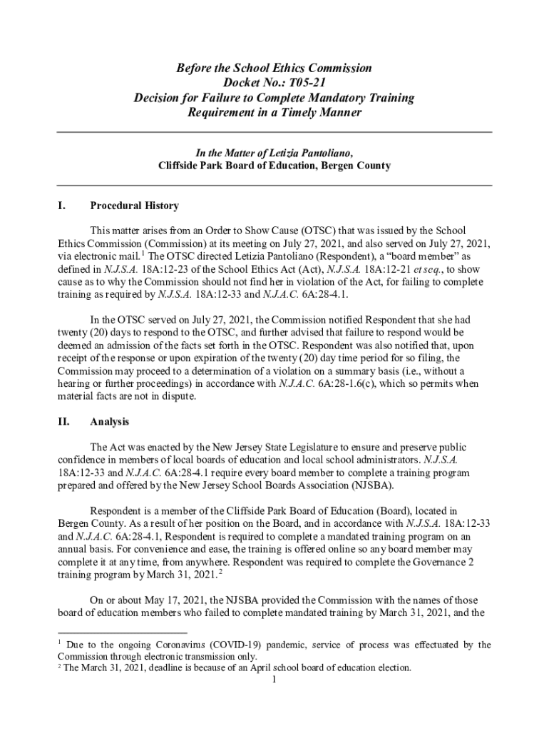 Get the free Before the School Ethics Commission Docket No.: T05-21 Decision ...