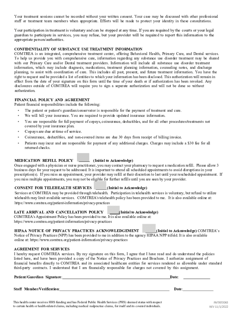 Any individual who is seeking services or treatment at comtrea for the first time would need to fill out a new patient form.