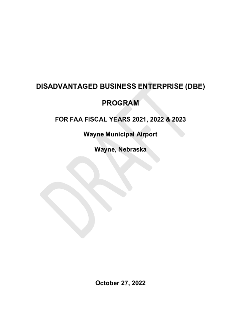 DISADVANTAGED BUSINESS ENTERPRISE (BE) PROGRAM FOR FAA FISCAL YEARS 2021, 2022 & 2023 Wayne Municipal Airport Wayne, Nebraska October 27, 2022Wayne Municipal Airport Wayne, Nebraska BE Program FY222324