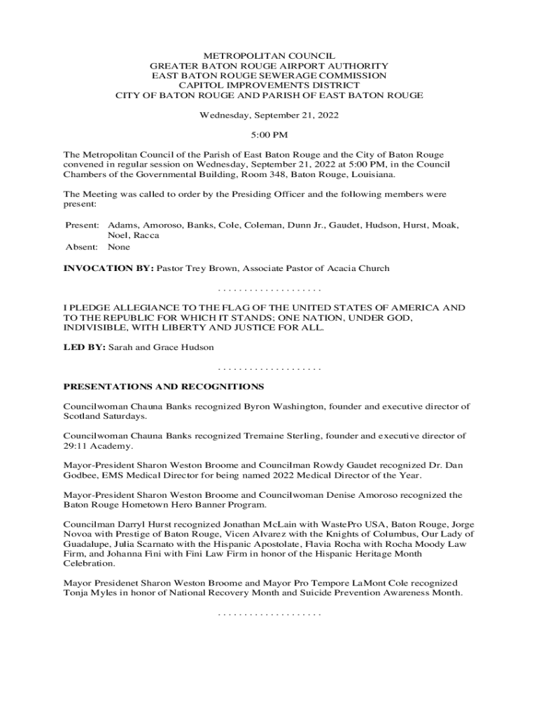 METROPOLITAN COUNCIL GREATER BATON ROUGE AIRPORT AUTHORITY EAST BATON ROUGE SEWERAGE COMMISSION CAPITOL IMPROVEMENTS DISTRICT CITY OF BATON ROUGE AND PARISH OF EAST BATON ROUGE Wednesday, September