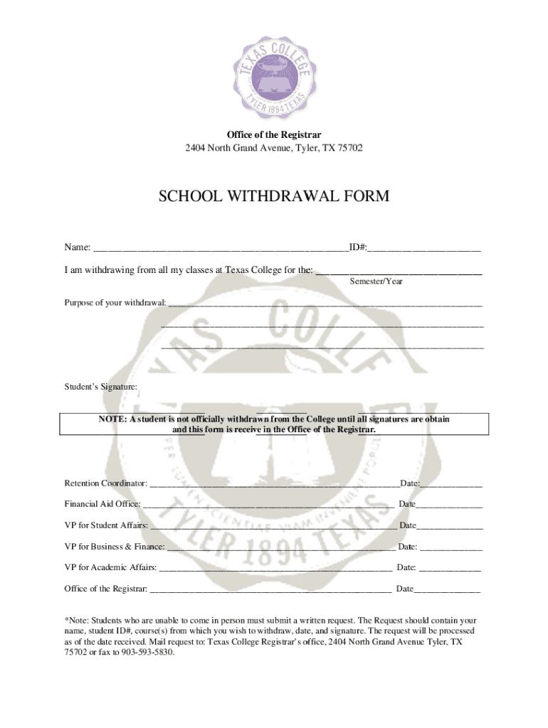 Printify You Close This Page All Info Is Voicemail RegistrarOffice of the Registrar 2404 4 North Grand d Avenue, Tyler, TX 757022SCHOO OF WIT THD RAW WA LFO ORM ___ ___ ___ ___ID D#:___ Name: __ I