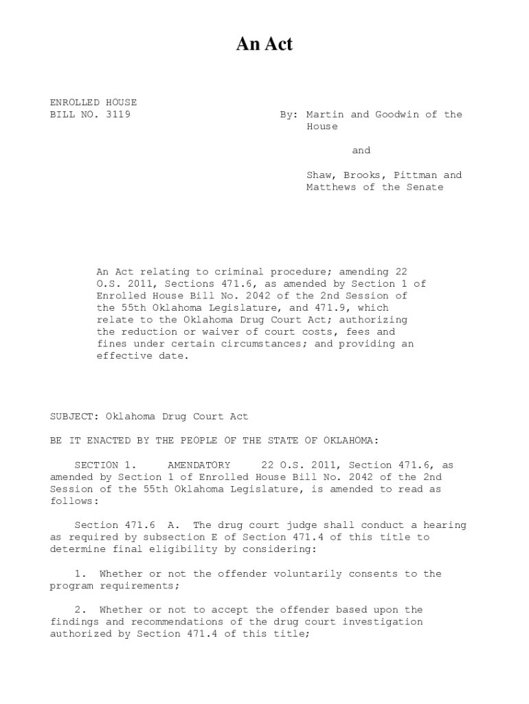 An Act ENROLLED HOUSE BILL NO. 3119By: Martin and Goodwin of the House and Shaw, Brooks, Pittman and Matthews of the Senate Act relating to criminal procedure; amending 22 O.S. 2011, Sections 471.6,