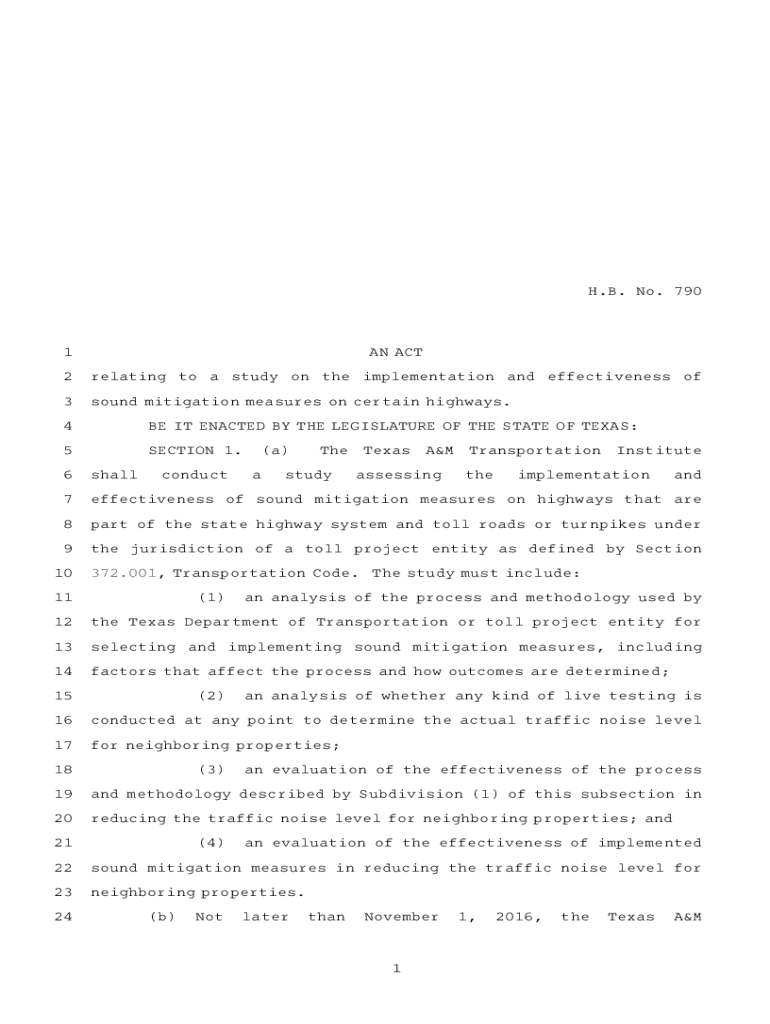 H.B.ANO. A7901AN ACT2relating to a study on the implementation and effectiveness of3sound mitigation measures on certain highways.4BE IT ENACTED BY THE LEGISLATURE OF THE STATE OF TEXAS:5SECTIONA1.AA(a)