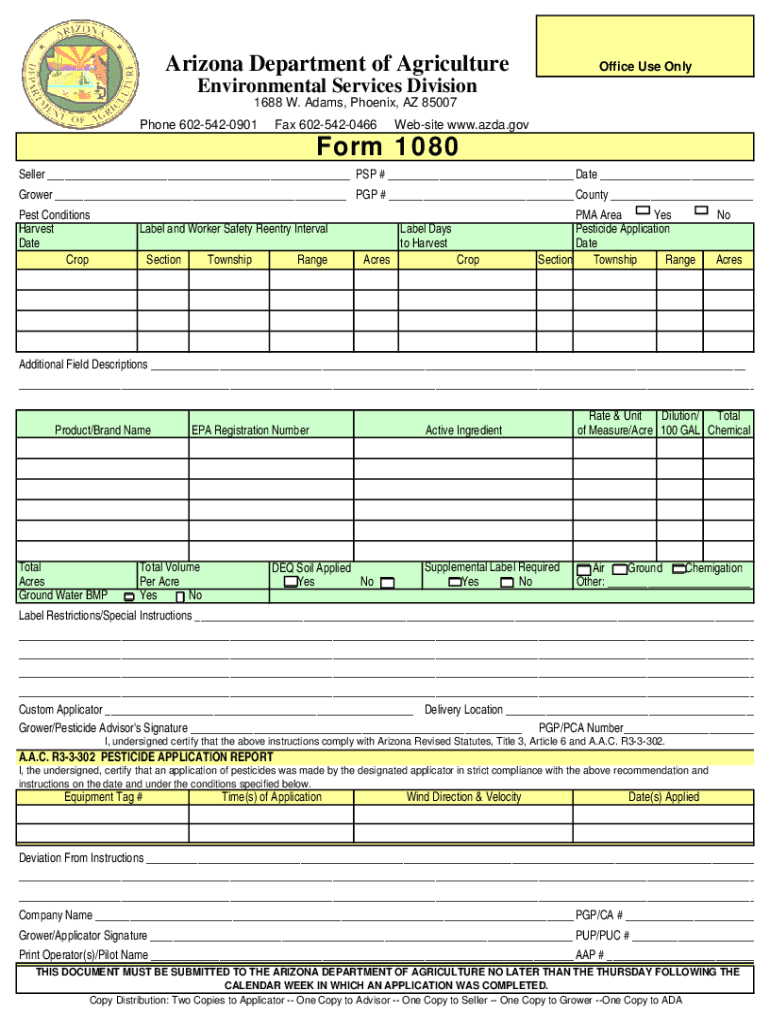 Phone 6025420901Fax 6025420466Website www.azda.govForm 1080Seller ___ PSP # ___Date