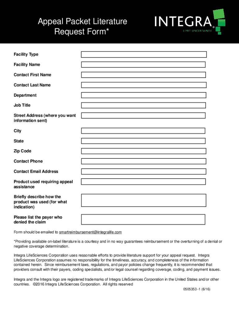 Medicare Appeal Packet for Primarily Dermal Repair Scaffold As a service to our customers, Integral Biosciences Corporation has assembled this packet of information to assist you with the Medicare