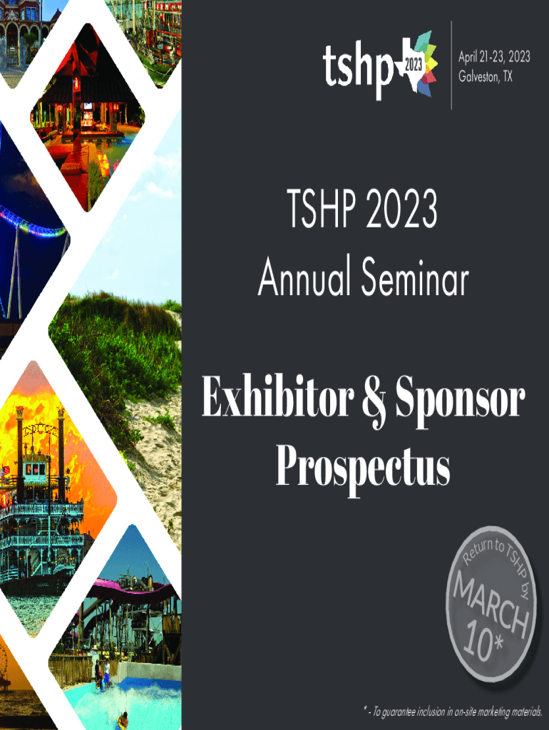 April 2123, 2023 Galveston, TEXTS 2023 Annual Seminar Exhibitor & Sponsor Prospectus turn to TS Rely on PMA RCH 10** To guarantee inclusion in onsite marketing materials. Excellent Results Are Found