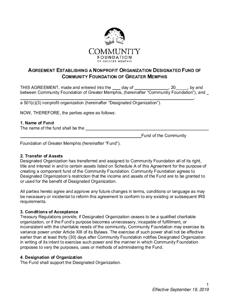 Get the free Nonprofit Organization Designated Fund Agreement w Logo 19.09.docx