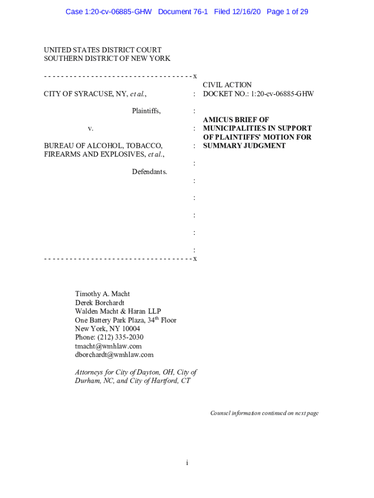 Get the free City of Syracuse, NY et al v. Bureau of Alcohol, Tobacco ...