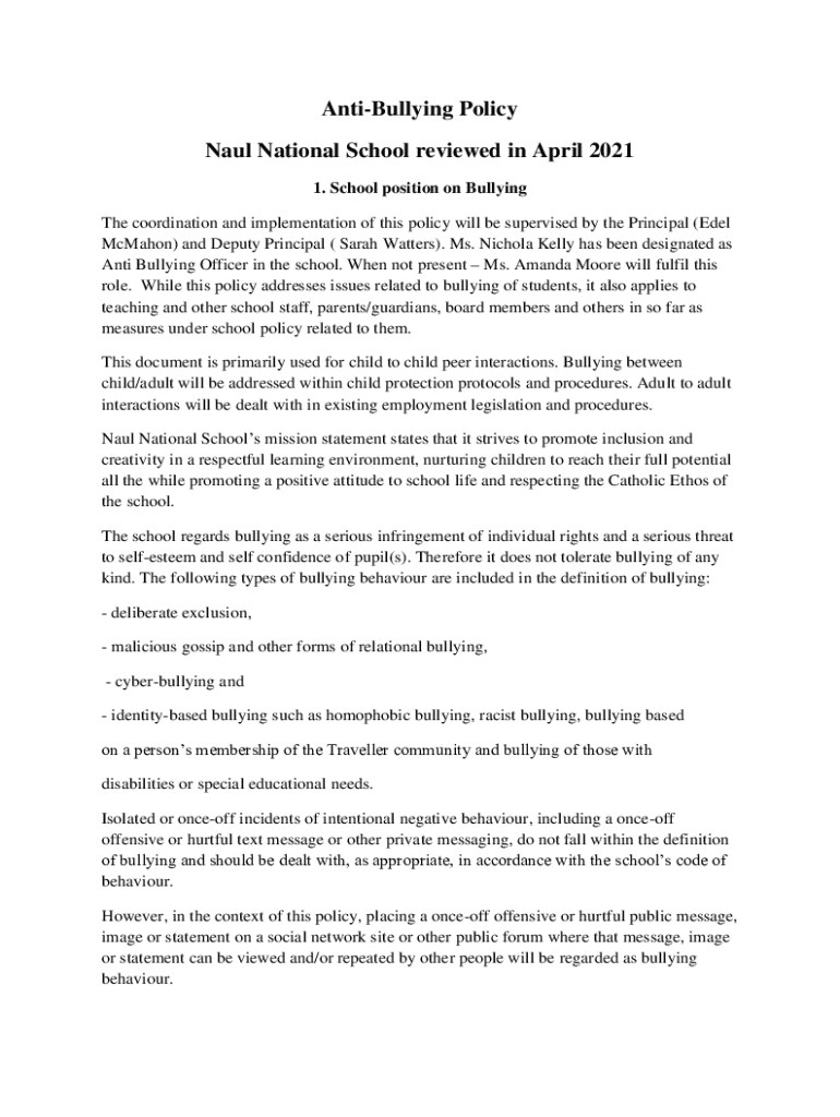 Get the free Anti Bullying PolicySaint Patrick's Boys' National School