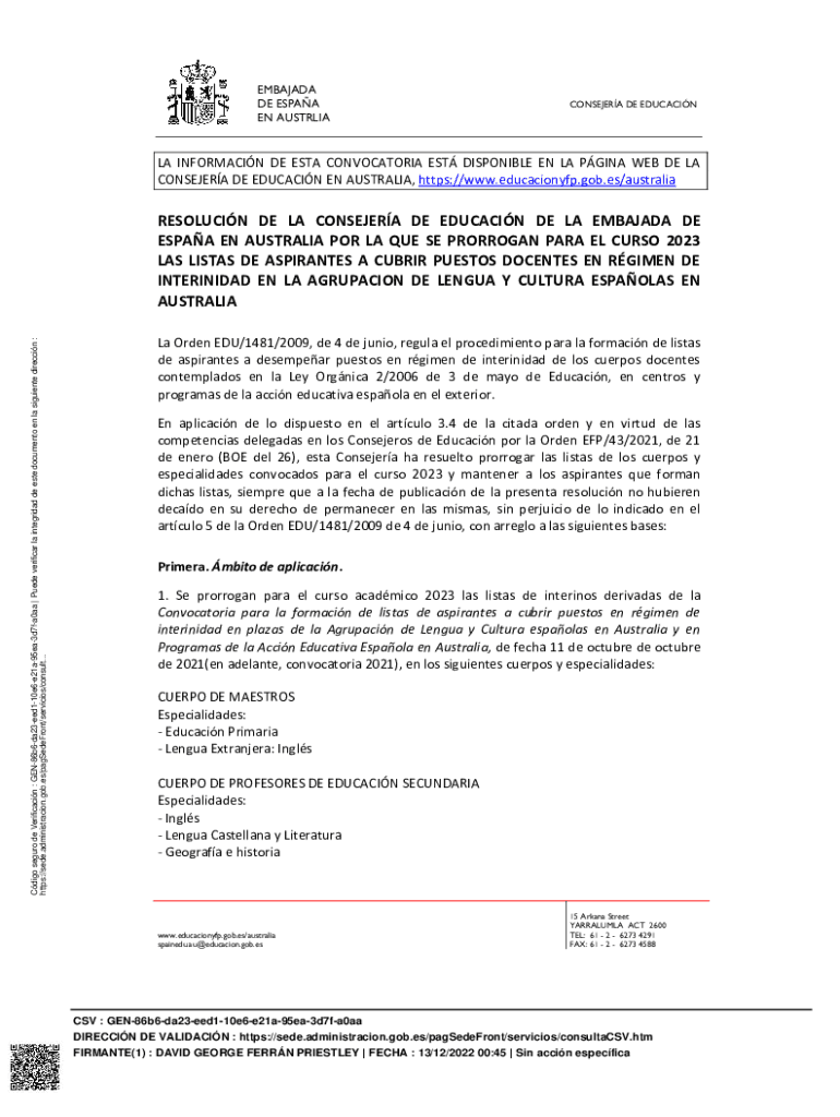 BAJADA DE ESAA EN AUSTRLIACONSEJERA DE EDUCATING INFORMATION DE ESTA CONVOCATORIA EST DISPOSABLE EN LAP GINA WEB DE LA CONSIDER DE EDUCATION EN AUSTRALIA, https://www.educacionyfp.gob.es/australiaCdigo