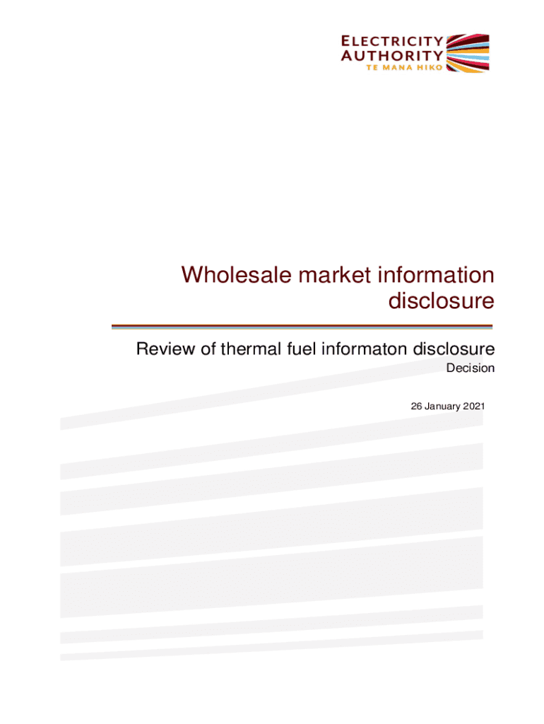 Wholesale market information disclosure Review of thermal fuel information disclosure Decision 26 January 2021Contents Executive summary31Decision52The Authority is seeking improvements to disclosure