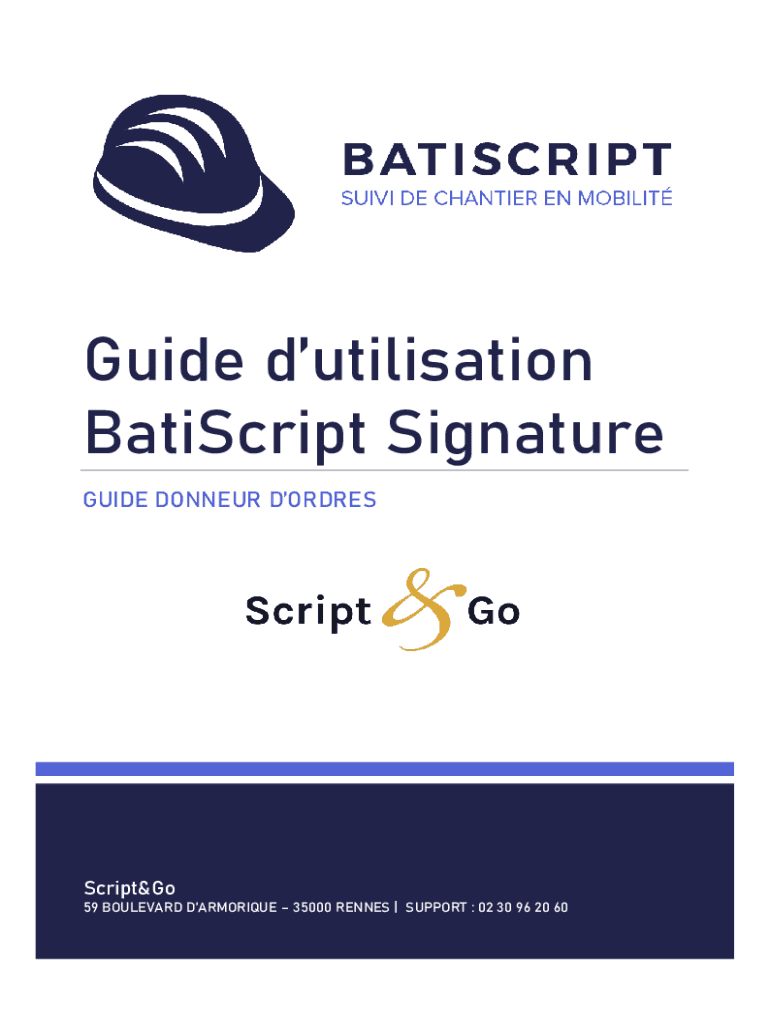 Guide utilization Manuscript Signature GUIDE DONNER DORDRESScript&Go59 BOULEVARD DARMORIQUE 35000 RENNES | SUPPORT : 02 30 96 20 60Guide utilization Manuscript SignatureCopyright et prerequisite document