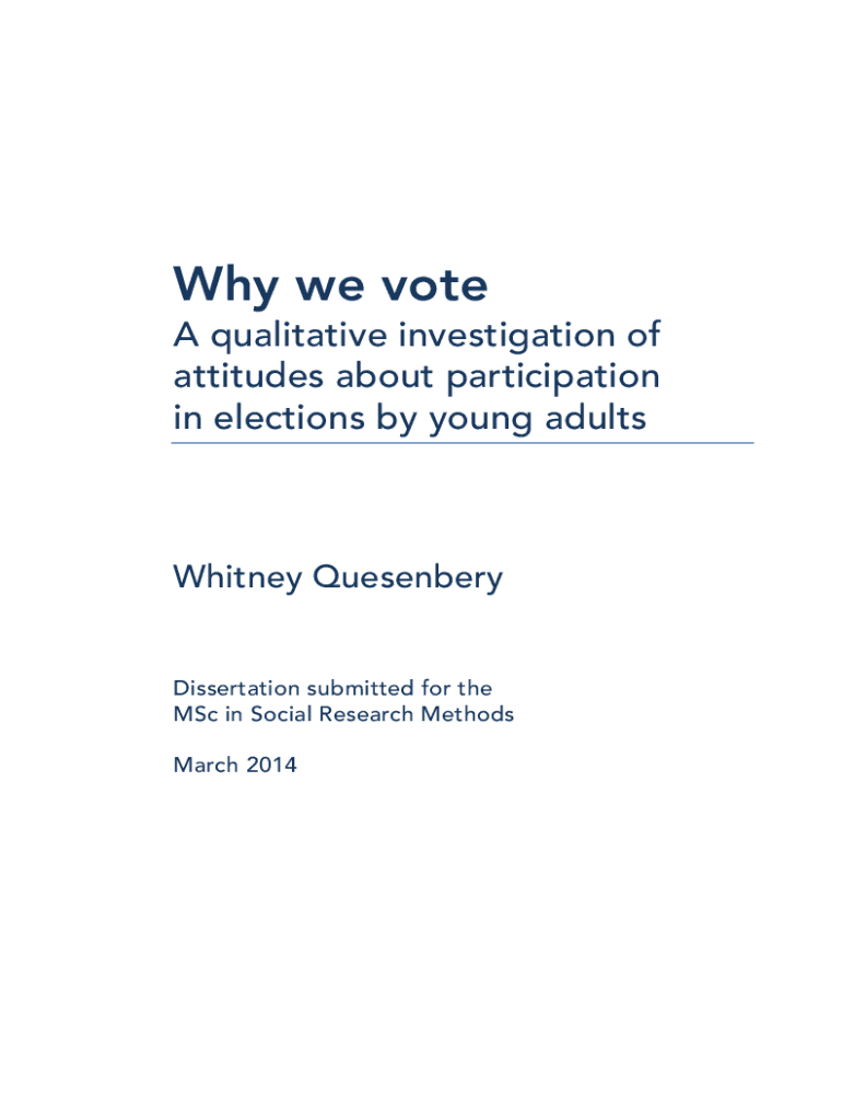 Why we vote A qualitative investigation of attitudes about participation in elections by young adults Whitney QuesenberyDissertation submitted for the M.Sc. in Social Research Methods March 2014ABSTRACT
