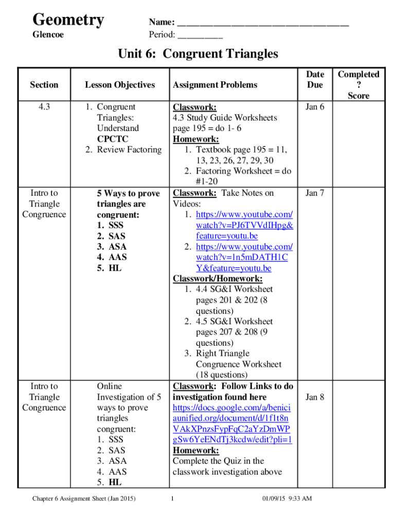 Get the free Unit 6: Congruent Triangles