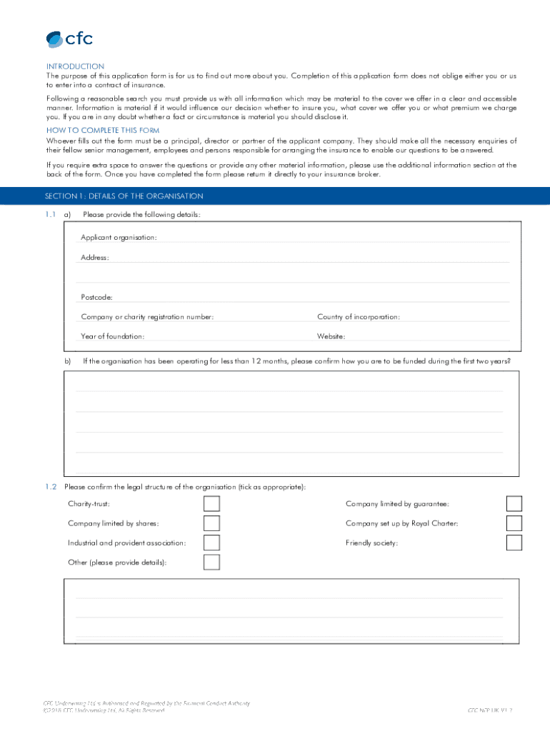 Not for profit Application form United KingdomINTRODUCTION The purpose of this application form is for us to find out more about you. Completion of this application form does not oblige either you