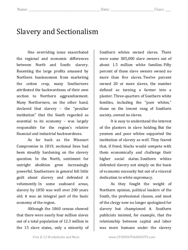 Get the free United States History - Slavery and Sectionalism