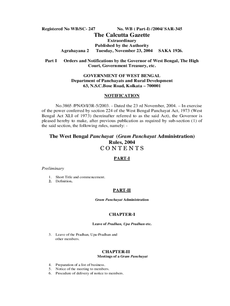 Registered No WB/SC 247No. WB (Part) /2004/ SAR345The Calcutta Gazette Ramayana 2 Part Extraordinary Published by the Authority Tuesday, November 23, 2004SAKA 1926. Orders and Notifications by the