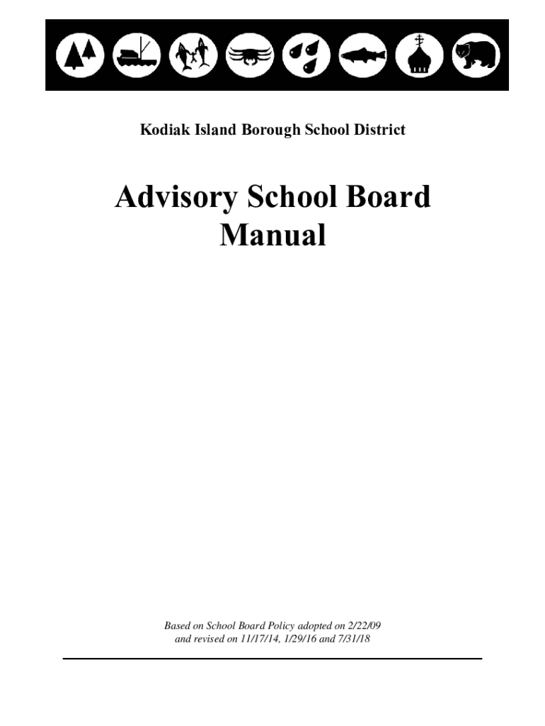 Kodiak Island Borough School DistrictAdvisory School Board ManualBased on School Board Policy adopted on 2/22/09 and revised on 11/17/14, 1/29/16 and 7/31/18ADVISORYSCHOOLBOARDMANUAL KodiakIslandBoroughSchoolDistrictTABLE