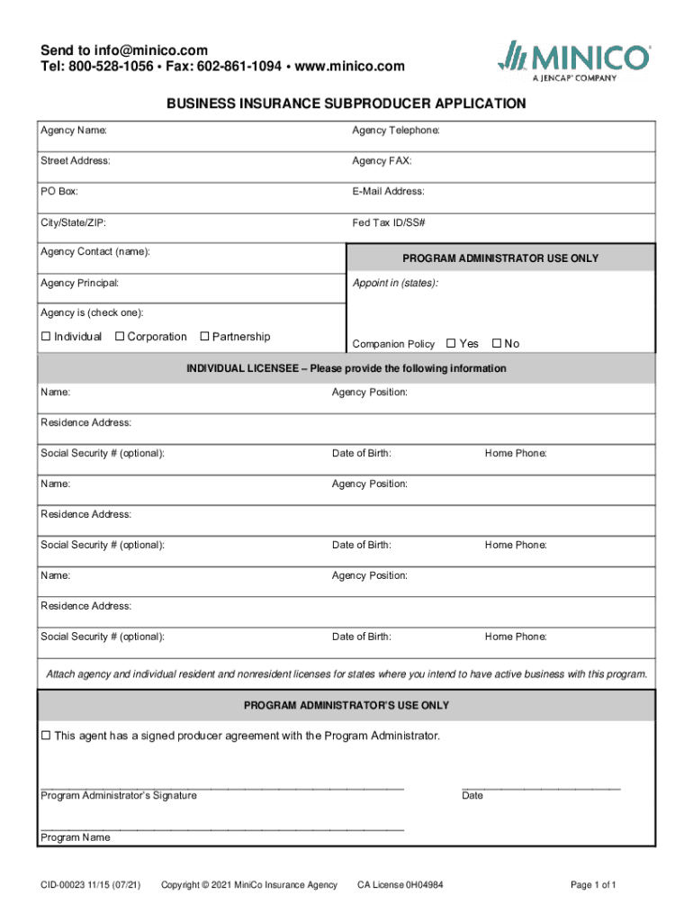 BUSINESS INSURANCE PRODUCER APPLICATION