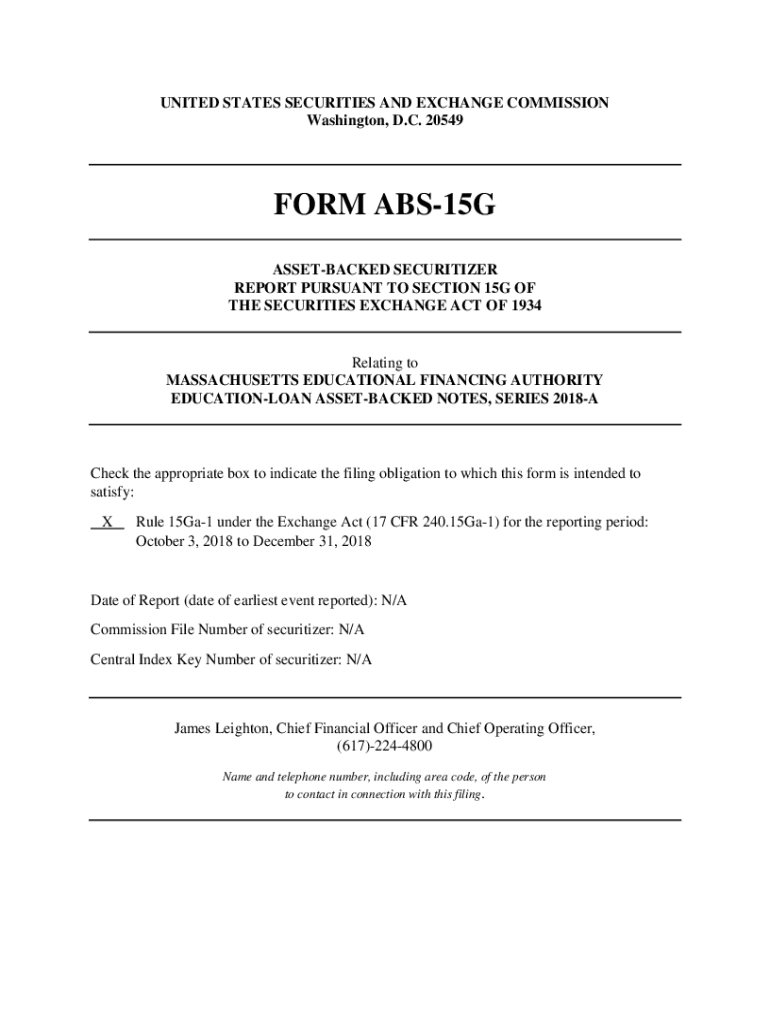 Form ABS-15G Asset Backed is a form used to report the asset-backed securities issued by a securitization vehicle.