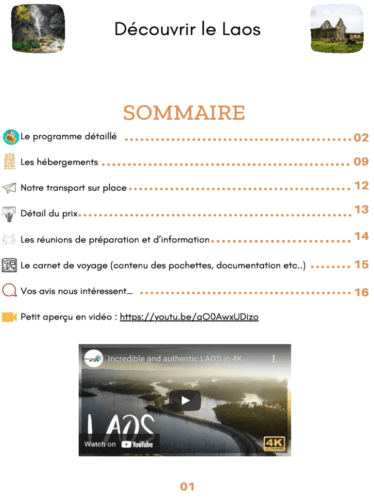 Courier LE LaosSOMMAIRE Le program dtaill02Les hbergements09Notre transport SUR place12Dtail Du prix13Les unions DE preparation et dinformation14Le carpet DE voyage (content DES brochettes, documentation
