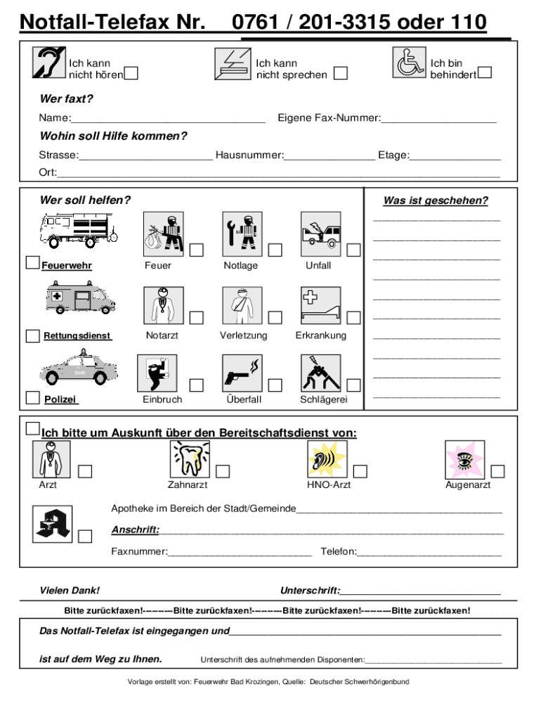 How to fill out notfall-telefax nr 0761 201-3315