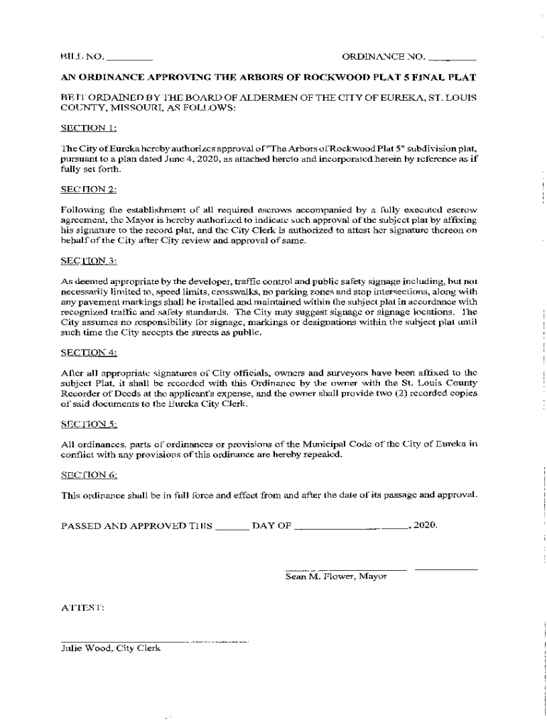 Get the free an ordinance approving the arbors of rockwood plat 6 final plat