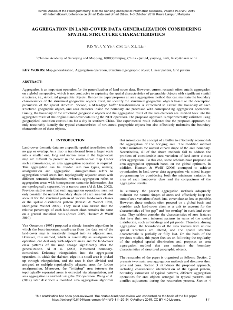 ISPS Annals of the Photogrammetry, Remote Sensing and Spatial Information Sciences, Volume IV4/W9, 2019 4th International Conference on Smart Data and Smart Cities, 13 October 2019, Kuala Lumpur,