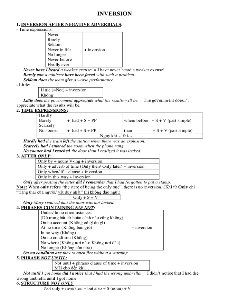 Email, fax, or share your inversion with negative adverbials form via URL. You can also download, print, or export forms to your preferred cloud storage service.