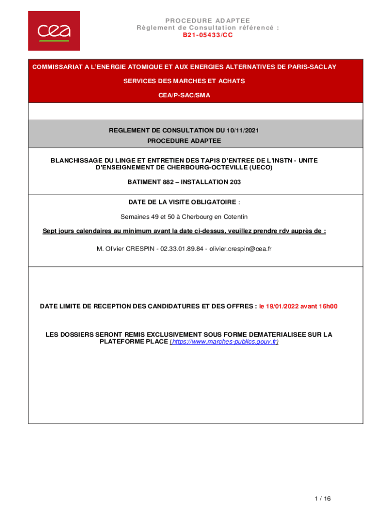 PR O C E DU R E AD AP T E Kg l em ENT de C on sub taxi on r f r en c : B2 1 05 4 33 /CC COMMISSARIAT A ENERGIES ATOMIZE ET AUX ENERGIES ALTERNATIVES DE PARISSACLAY SERVICES DES MARCHES ETA CHATS CEA/PAC/STARTLEMENT