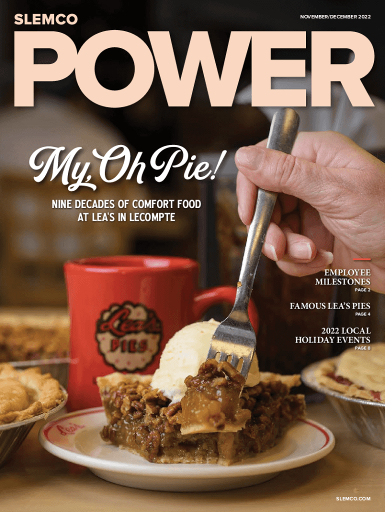 NOVEMBER/DECEMBER 2022My,Oh Pie! NINE DECADES OF COMFORT FOOD AT LEA\'S IN LECOMPTEEMPLOYEE MILESTONESPAGE 2FAMOUS LEAS PRESAGE 42022 LOCAL HOLIDAY EVENTUATE 8SLEMCO.COMPARE NOTE Volume 70 No. 6November/December