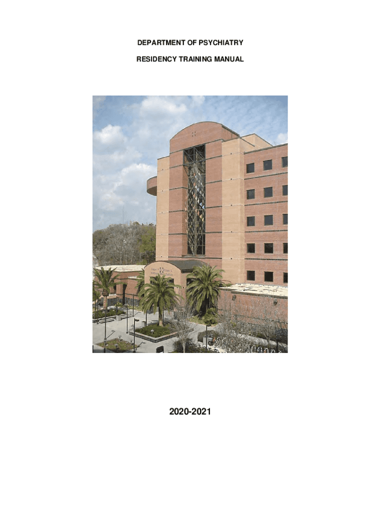 DEPARTMENT OF PSYCHIATRY RESIDENCY TRAINING MANUAL20202021DEPARTMENT OF PSYCHIATRY RESIDENCY PROGRAM MISSION STATEMENT Our mission is to develop psychiatrist leaders, scholars, and clinician educators