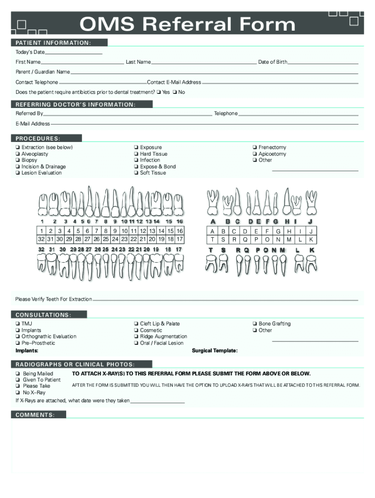OMS Referral Form PATIENT I N FO R M AT I ON: Today's Daters Nameless Name Date of Birthmark / Guardian Name Contact TelephoneContact Email Addresses the patient require antibiotics prior to dental