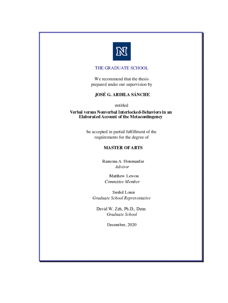 Get the free A thesis submitted in partial fulfillment of the requirements ... - scholarworks unr