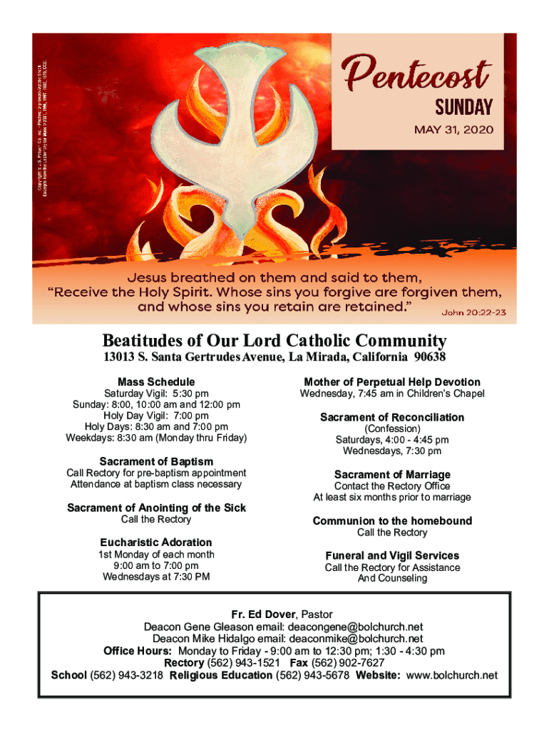 Beatitudes of Our Lord Catholic Community 13013 S. Santa Gertrude's Avenue, La Mirada, California 90638 Mass Schedule Saturday Vigil: 5:30 pm Sunday: 8:00, 10:00 am and 12:00 pm Holy Day Vigil: 7:00