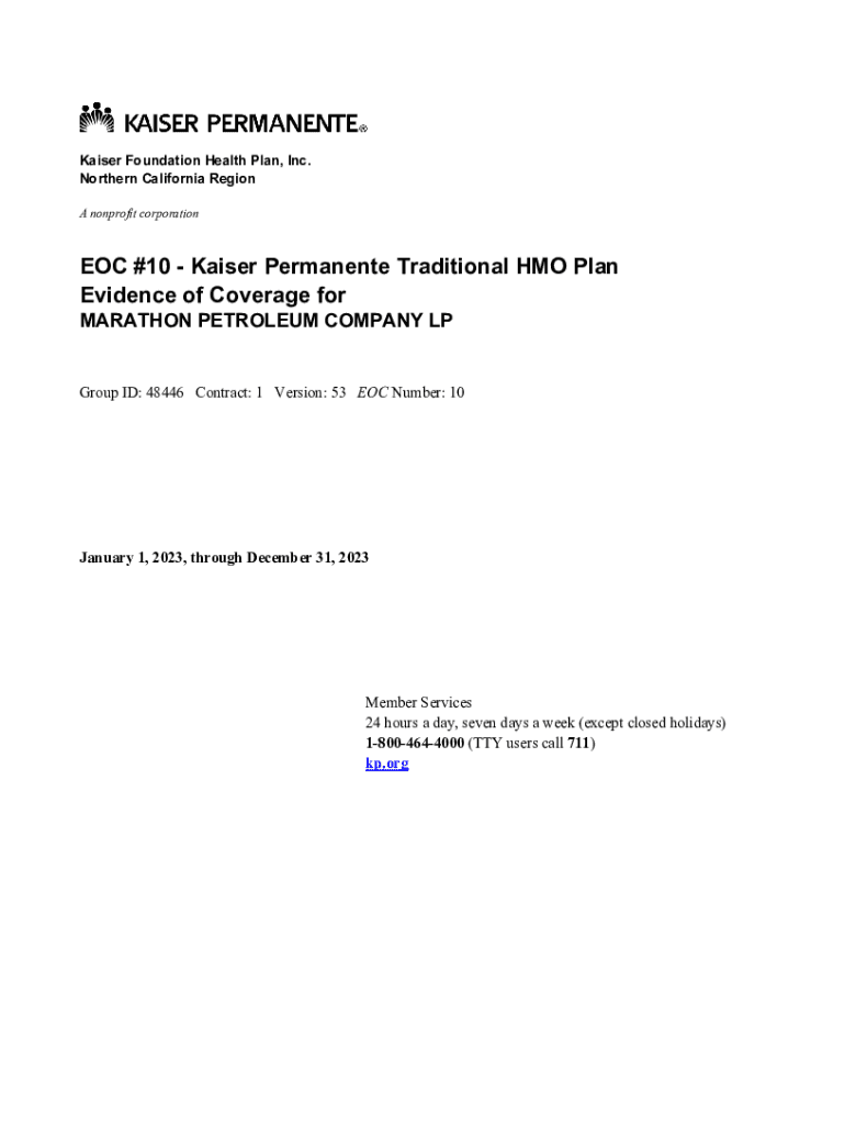 Kaiser Foundation Health Plan, Inc. Northern California Region A nonprofit corporation #10 Kaiser Permanent Traditional HMO Plan Evidence of Coverage for MARATHON PETROLEUM COMPANY Group ID: 48446