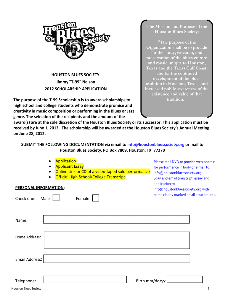 Get the free 2012 SCHOLARSHIP APPLICATION