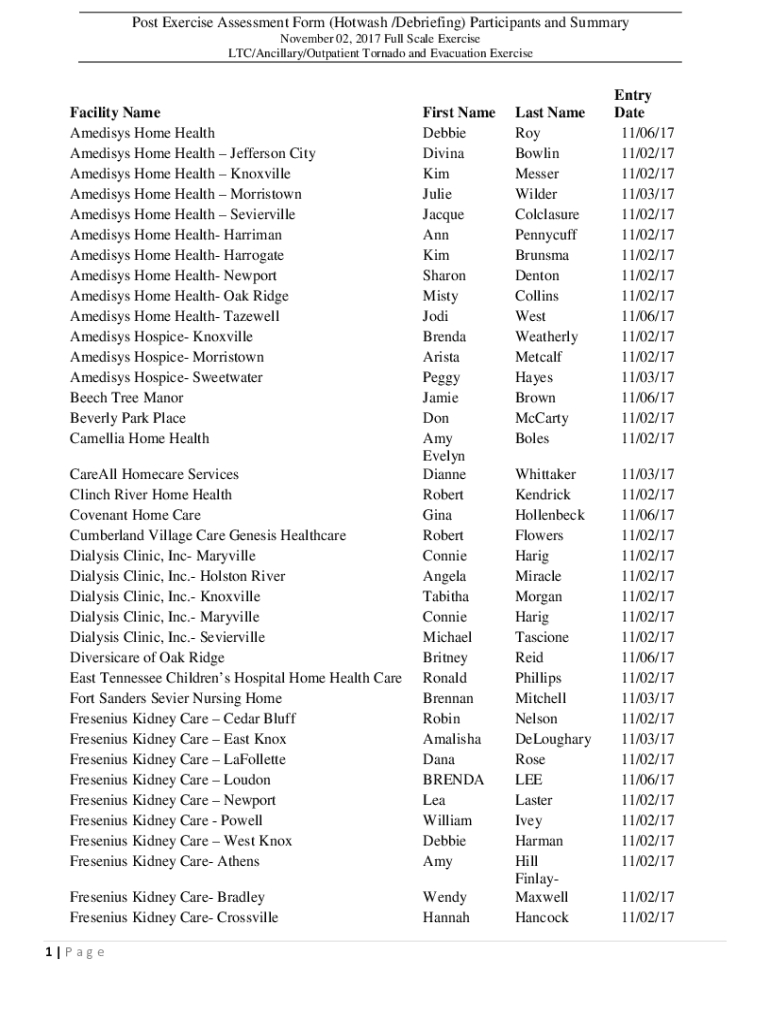Get the free Post Exercise Assessment Form (Hotwash /Debriefing) Participants ...