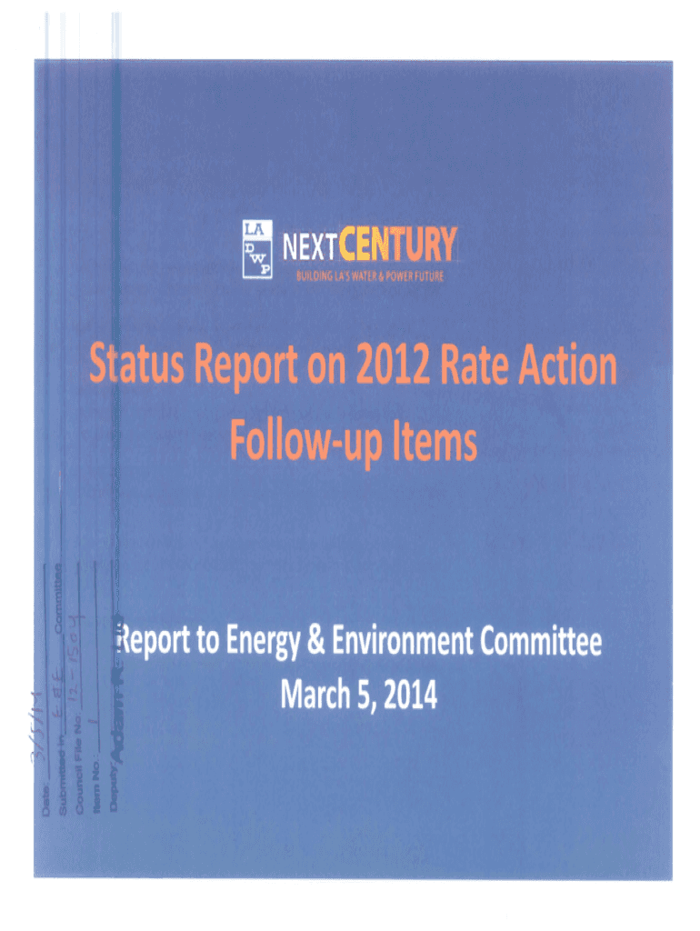 13 1J3nextCENTUR BUILDING LAS WATERS. POWER FUTURECouncil Fine Status Report on 2012 Rate Action Followup ItemsReport to Energy & Environment Committee March 5, 2014Council Followup Items From 2012