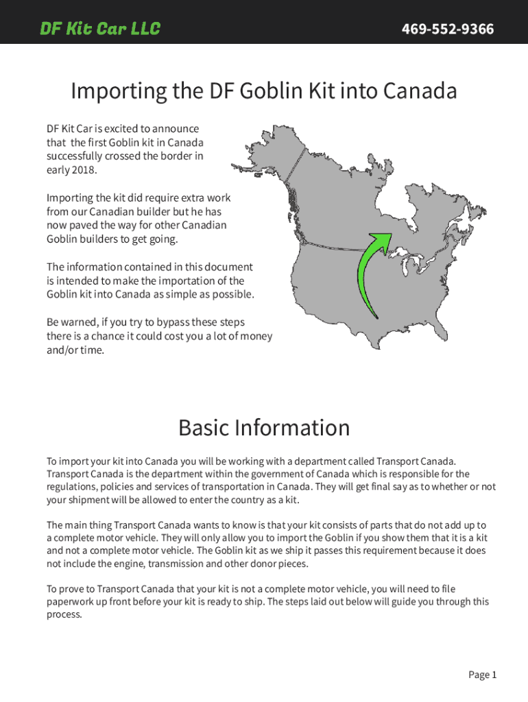 Get the free Importing the DF Goblin Kit into Canada Basic Information