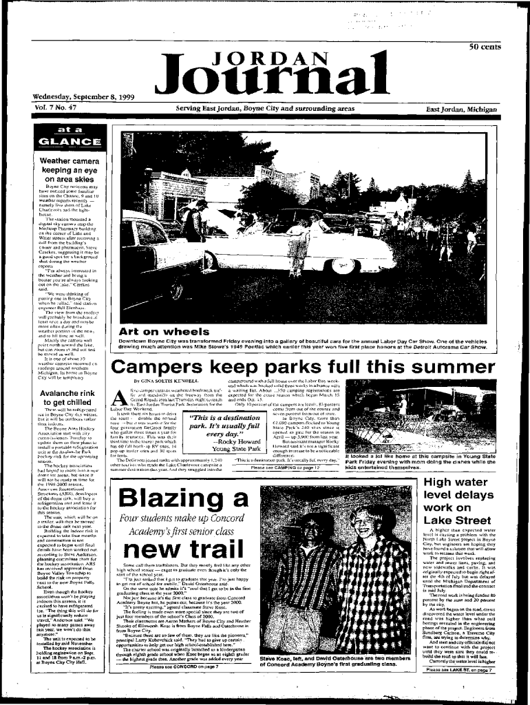 Wednesday, September 8,1999, Vol. 7 No. 47JORDAN1Journal Serving East Jordan, Boyne City and surrounding areas50 cents East Jordan, Michigan at a GLANCE Weather camera keeping an eye on area skies