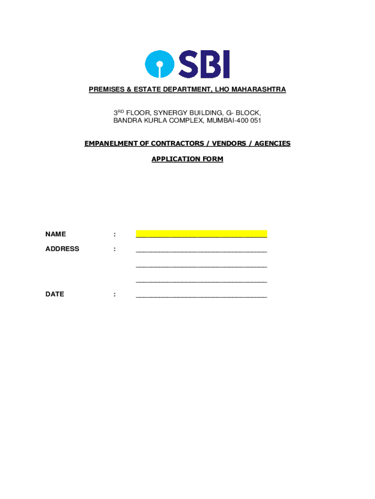Get the free EMPANELMENT OF CONTRACTORS/VENDOR State Bank of ...