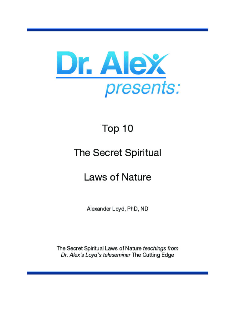 Alexander Loyd, PhD, NDT he Secret Spiritual Laws of Nature teachings from